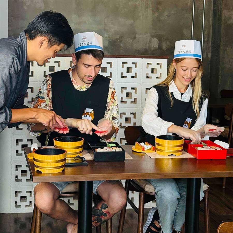 『ごまきち道場』は、沖縄・那覇で握り寿司体験ができる体験型の和食居酒屋です。
