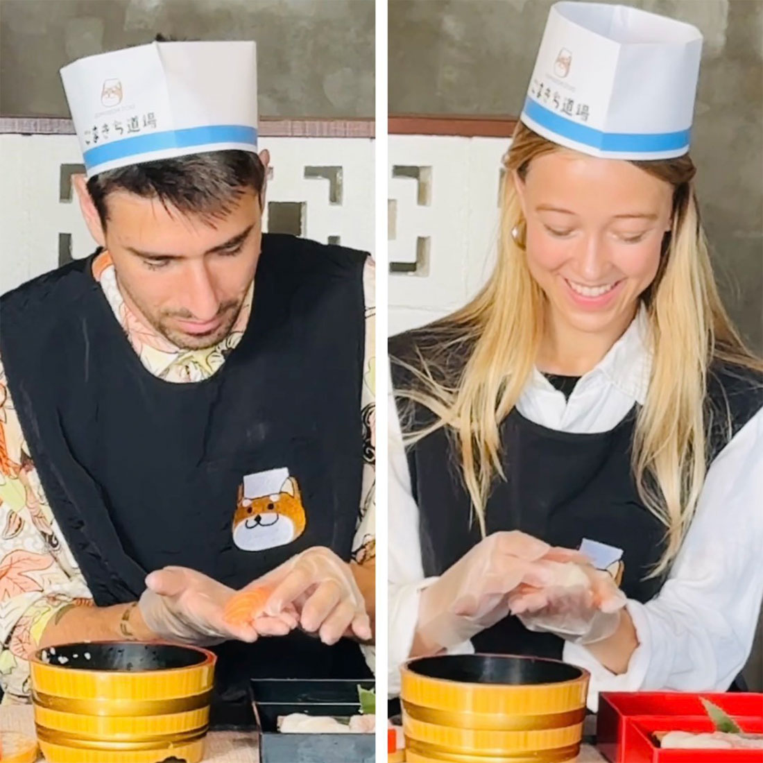 シャリの切り方から握り、ネタをのせてお皿に並べるまでを、職人が段階的にレクチャー。初めてでも安心です。